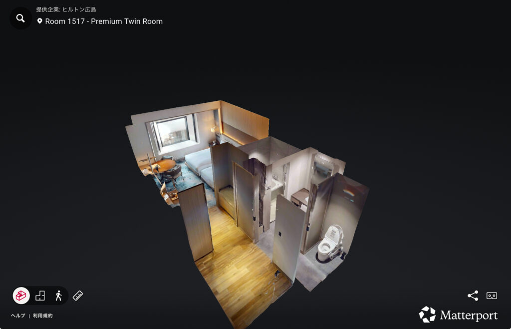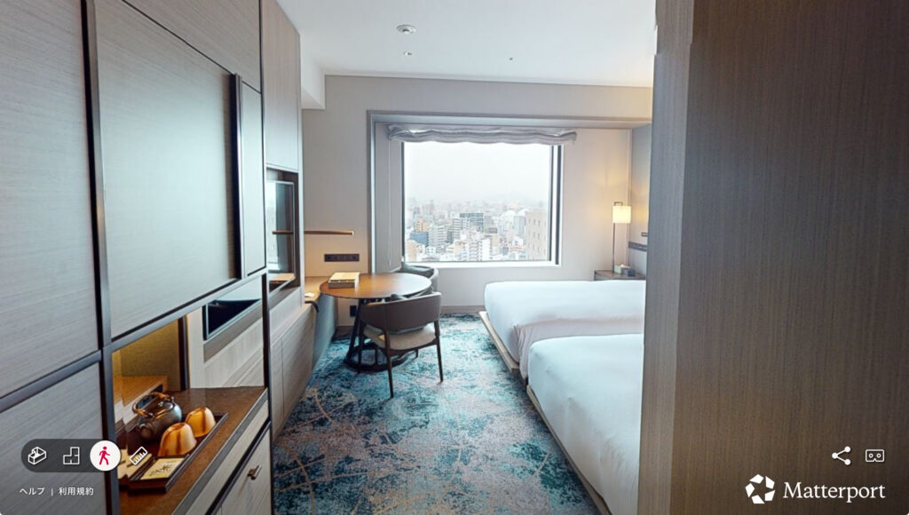 ヒルトン広島のHPには360度ビューマップという機能があるので、ぜひ使っていただければその広さ感をしっかり感じていただけると思います。