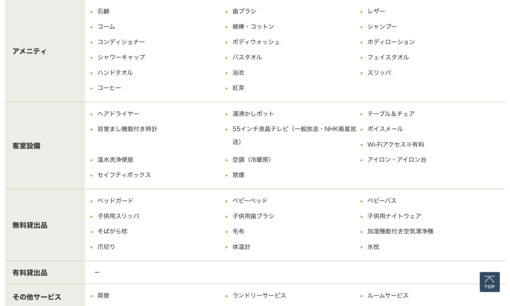 アメニティも細かくH Pに載ってますので要チェックですね。