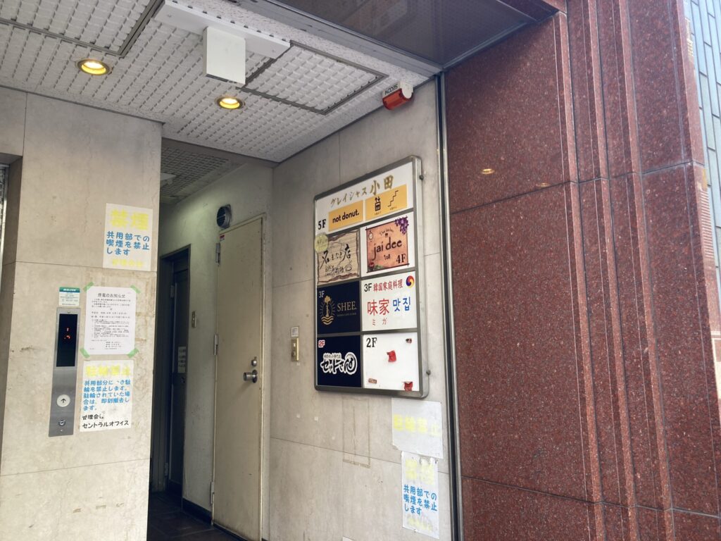 「Not Donut」さんは本通りから1本北側の通り沿いの雑居ビルの5階に立地しています。