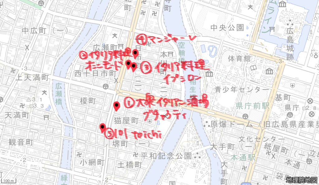 (大衆イタリアン酒場ブチャラティさん以外は、口コミや評価などを参考にしています)