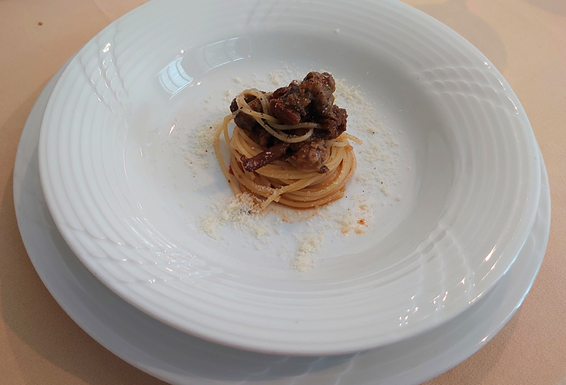 いよいよメインを注文します。奥さんとお肉かパスタかで迷います。