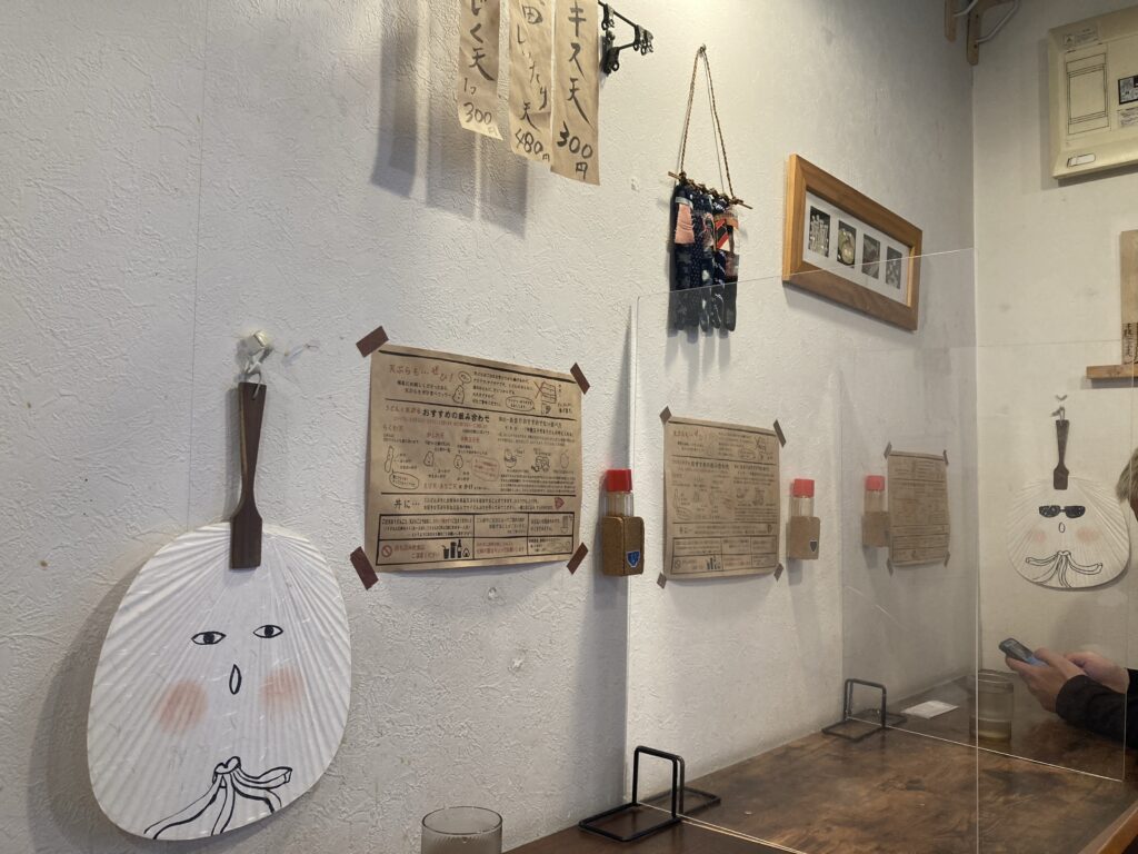 うちわも置いてあり、うどんを食べている絵が描かれていてかわいいです笑。装飾もお店に雰囲気にマッチしていてとてもこだわりを感じました。