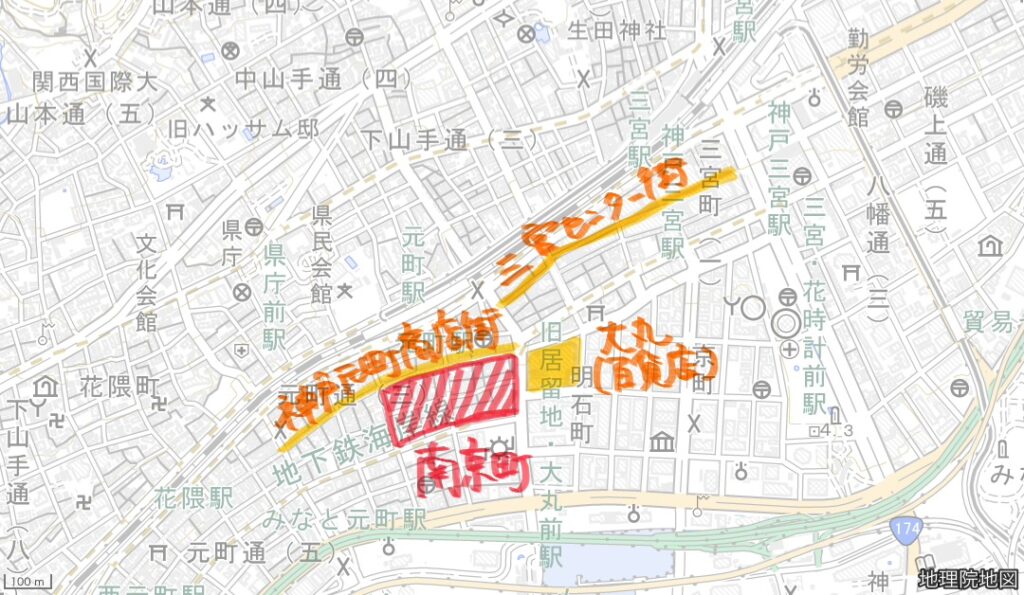 ただその場所は、神戸港開港に合わせて、関係する外国人が住むために用意された「居留地」の外側の様です。