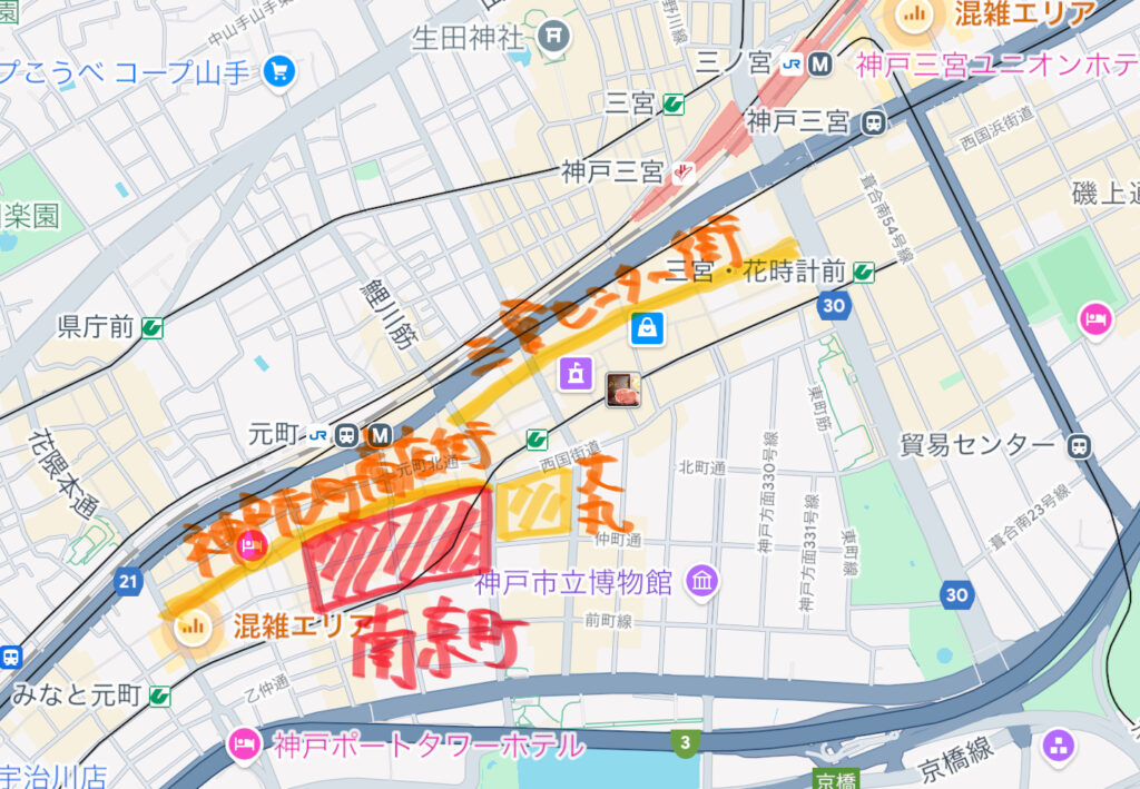 そんな南京町は、JR三宮駅から三宮センター街を西に抜けて徒歩10分、